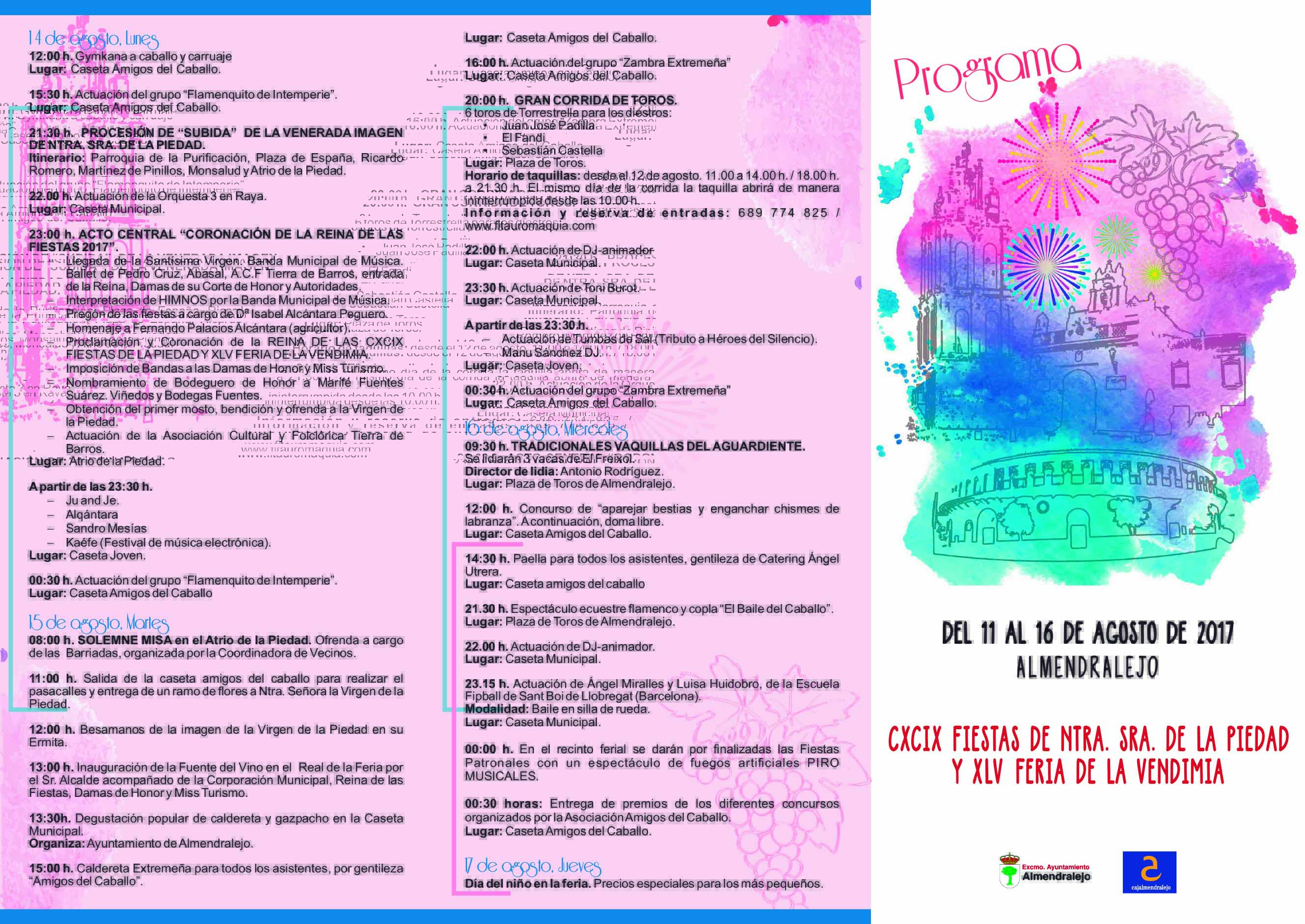 PROGRAMA CXCIX FIESTAS DE NTRA. SARA. DE LA PIEDAD Y XLV FERIA DE LA VENDIMIA