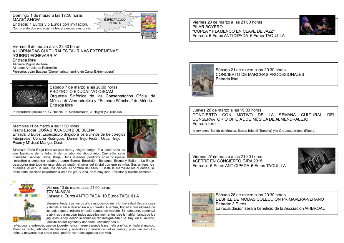 <p>Programación del Teatro Carolina Coronado del mes de marzo de 2015</p>