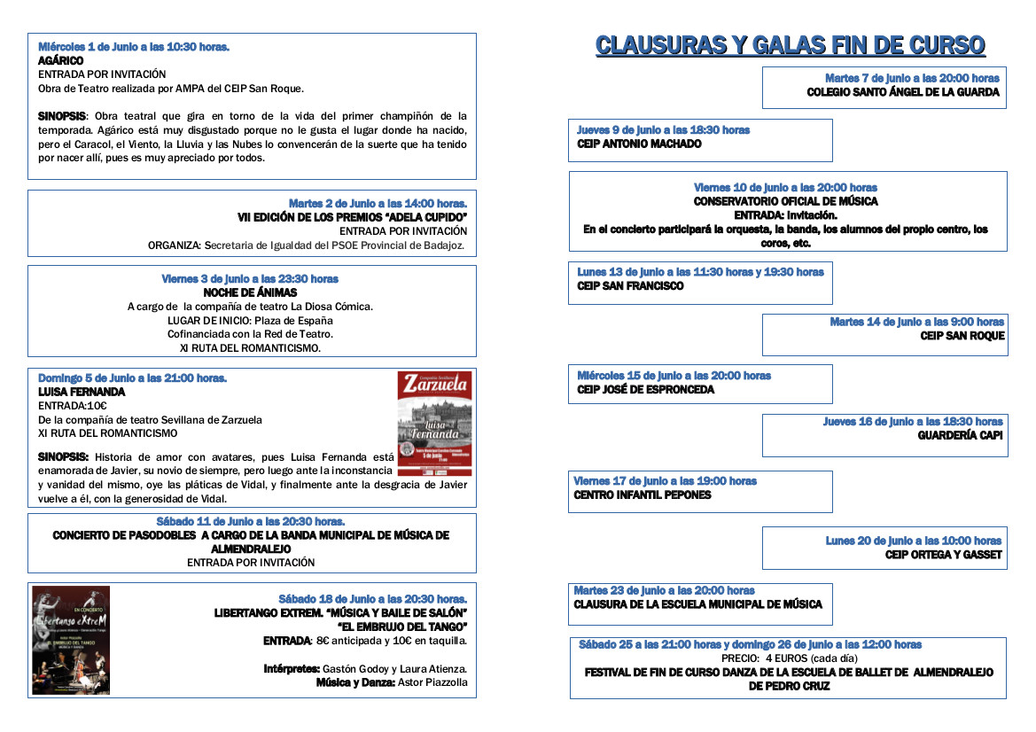 <p>Ya est&aacute; disponible la programaci&oacute;n del mes de Junio del Teatro Carolina Coronado.</p> <p>Si quieres verla abre el archivo adjunto.</p>